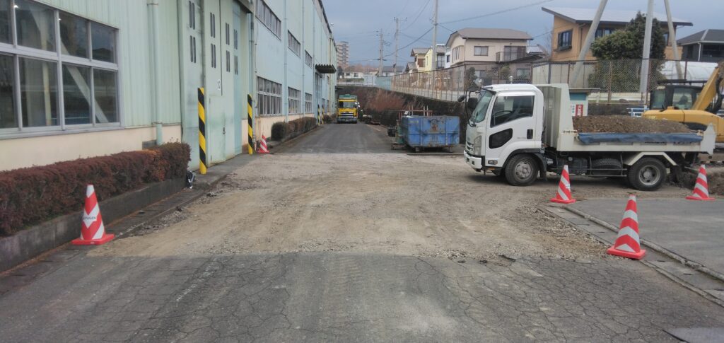 製造加工企業の敷地内道路舗装および側溝外構ほか。油圧プレスと切断事業を大型の機械設備で一手に加工を請け負っている御社。トレーラー等の大型車両が日々往来するなか強固な路面に仕上げます。 2026 3/03 外構工事 exterior-construction 舗装工事 paving March 3, 2026 工事名製造加工会社K様敷地内整備施工時期2026/2施工場所静岡県駿東郡長泉町下長窪 外構工事 exterior-construction 舗装工事 paving 駿河湾を見下ろす高台の温泉ホテル。大規模リノベーションでより一層豊かな海の幸を愉しみつつ天然温泉で贅沢なひとときの空間をつくり上げます。